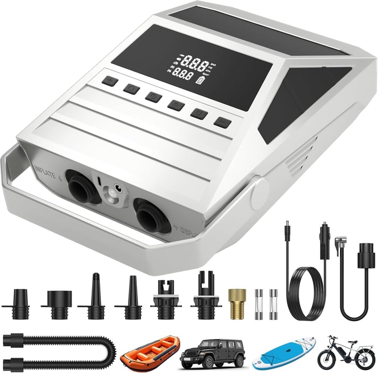 Boasts 5 dedicated inflation modes for SUPs, air mattresses, cars, motorcycles, and bicycles, supporting both inflation and deflation functions to meet diverse needs of outdoor, travel, and daily use.