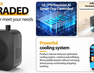 Electric Paddle Board Pump, Rechargeable 20PSI High Pressure SUP Pump, Intelligent Dual Stage Inflation & Deflation, Auto-Off for Stand Up Paddle Boards