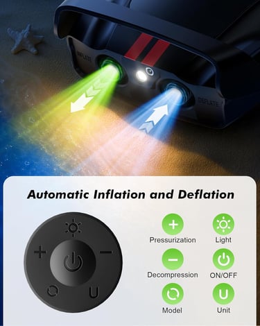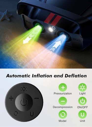 【REAL-TIME NUMERIC DISPLAY】Inflatable pump portable LED numeric display effortlessly monitors pressure levels. Easily adjust settings using the "+" and "-" buttons, and keep track of real-time pressure readings for precise control and efficient operation.